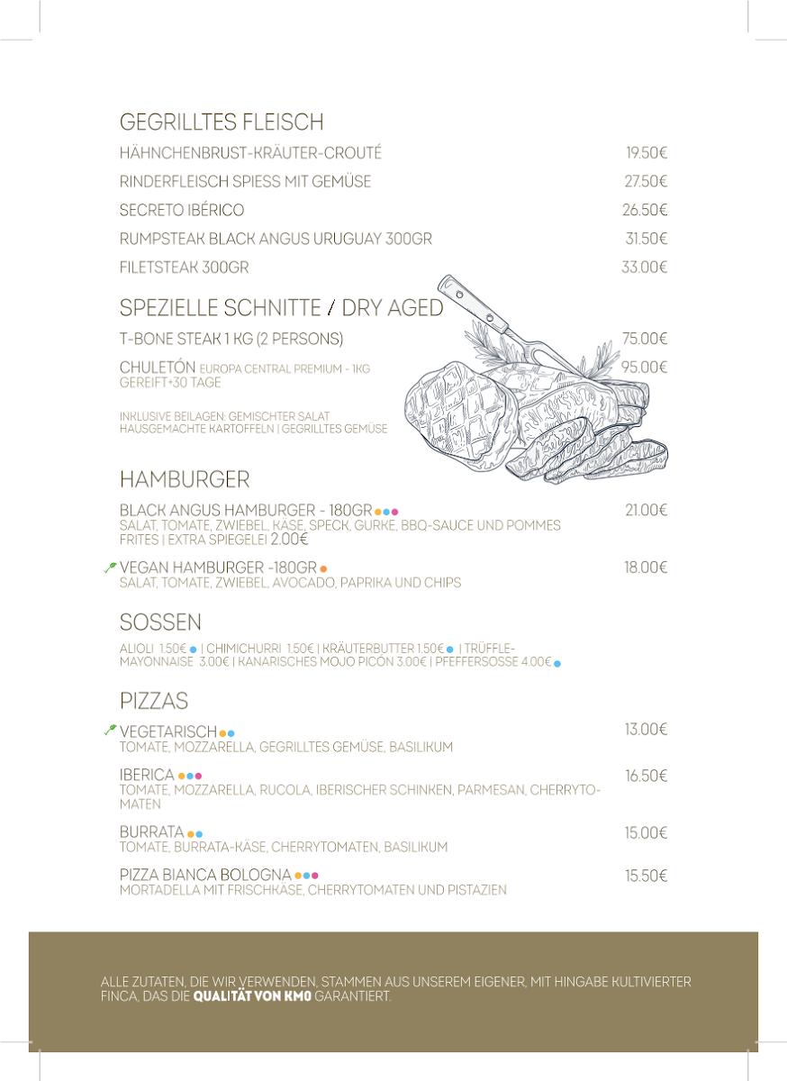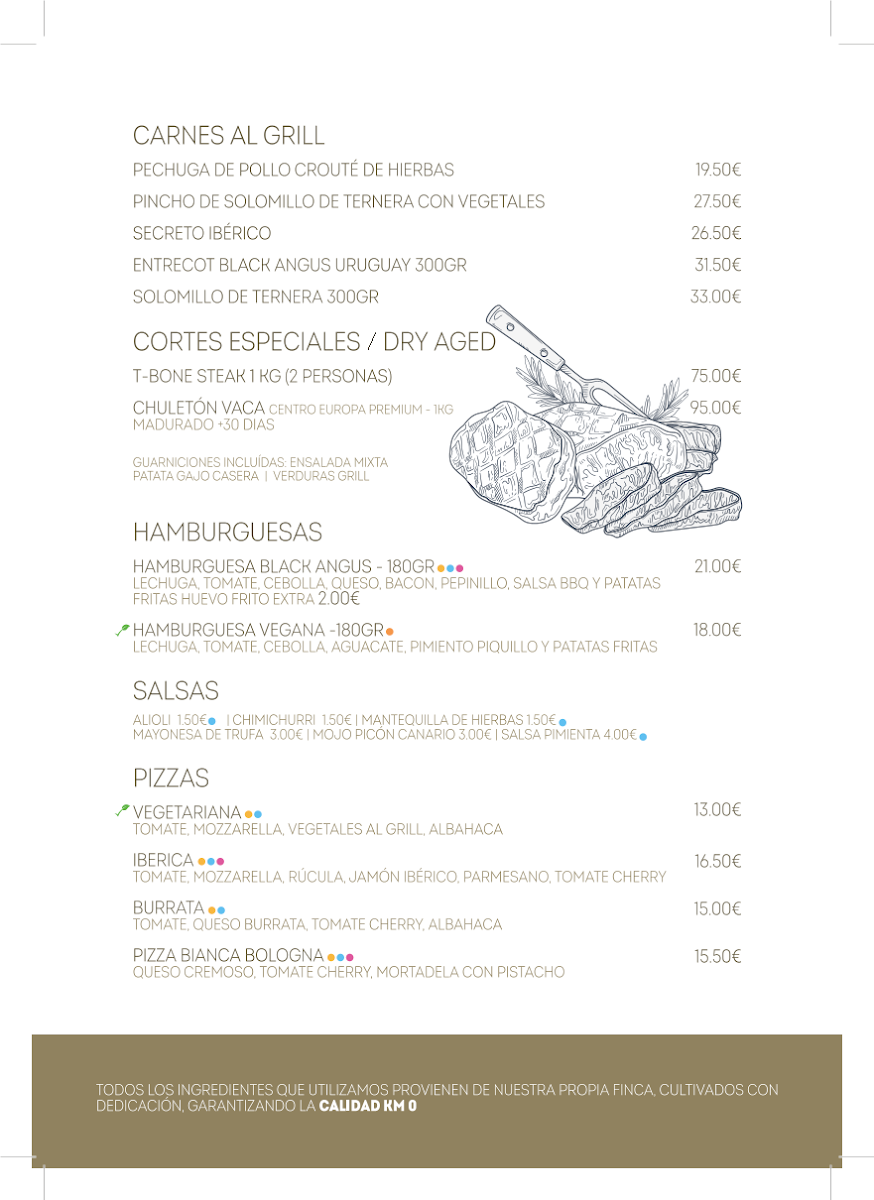 GUARNICIONES INCLUÍDAS DE CARNES Ensalada Mixta & Patata Asada al Horno con Alioli Verduras Asadas al Grill GARNISHES INCLUDING Mixed Salad & Baked Potato with Alioli Grilled Vegetables